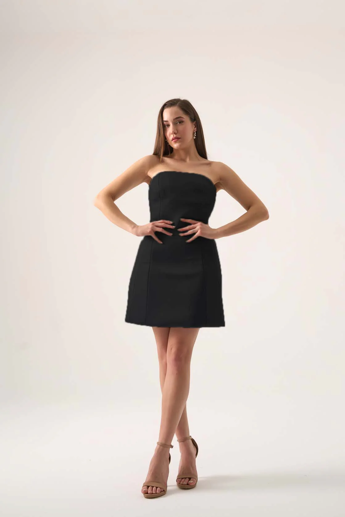 Inspired by our best-selling Ginger Mini Mikado dress, the Nadine Crepe Mini was designed with comfort and elegance in mind. This strapless mini dress features darted seams for a sculpted silhouette, ensuring a flattering and secure fit.
